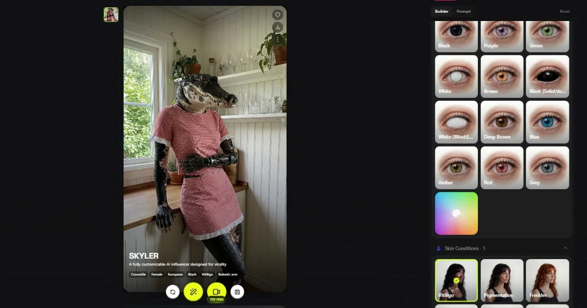 • Giao diện Higgsfield AI Influencer Studio