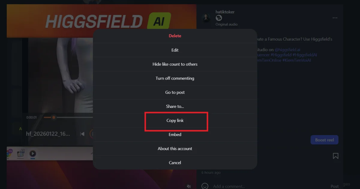 Bước 8: Đăng bài lên Instagram sau đó lấy link và up lên Higgsfield