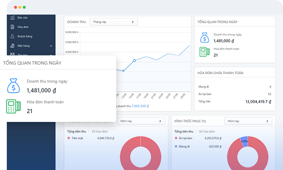 Sapo FnB còn mang đến hệ thống biểu đồ khoa học giúp chủ quán có cái nhìn tổng quan về tính hình kinh doanh trong quán và từ đây bạn có thể đưa ra các chiến lược kinh doanh cũng như các chiến dịch marketing,chăm sóc khách hàng một cách tốt nhất